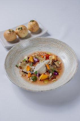 Sus mesas vestidas con manteles blancos y vajilla de primera línea se encuentran siempre impecables para recibir las especialidades del chef ejecutivo Julián del Pino. Como entrada, se sugiere el tiradito de pesca del día, las gírgolas grilladas, el ceviche de langostinos salteados y la pizza crocante de espinacas, que se encuentra en todas las sedes del mundo del restaurante (con provolone ahumado, mozzarella fior di latte, espinaca, aceite de oliva y ajo). Entre los principales, sobresale el filet mignon con salsa criolla, el risotto de maíz con zucchinis y queso brie (o queso de castañas en su versión vegana) y el matambre de cerdo con ensalada de mango y papaya. A la hora del dulce, se ofrecen postres clásicos reversionados, como el cheesecake de queso de cabra y mermelada de higos; el Don Pedro Mizunara, que combina helado de crema americana, garrapiñada de nueces y un scotch blend criado en barricas de roble japonés; y el bizcocho húmedo de naranja con cremoso de chocolate, sopa de yogur y chocolate blanco.