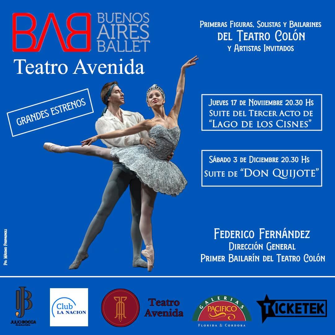 El BAB (Buenos Aires Ballet), con la dirección de Federico Fernández, primer bailarín del Teatro Colón, cumple diez años y lo festeja en el Teatro Avenida con una espectacular puesta en escena del «Lago de los Cisnes», de Tchaikovsky, que incluirá figuras invitadas del Teatro Colón, el Teatro Argentino de La Plata y de artistas independientes.