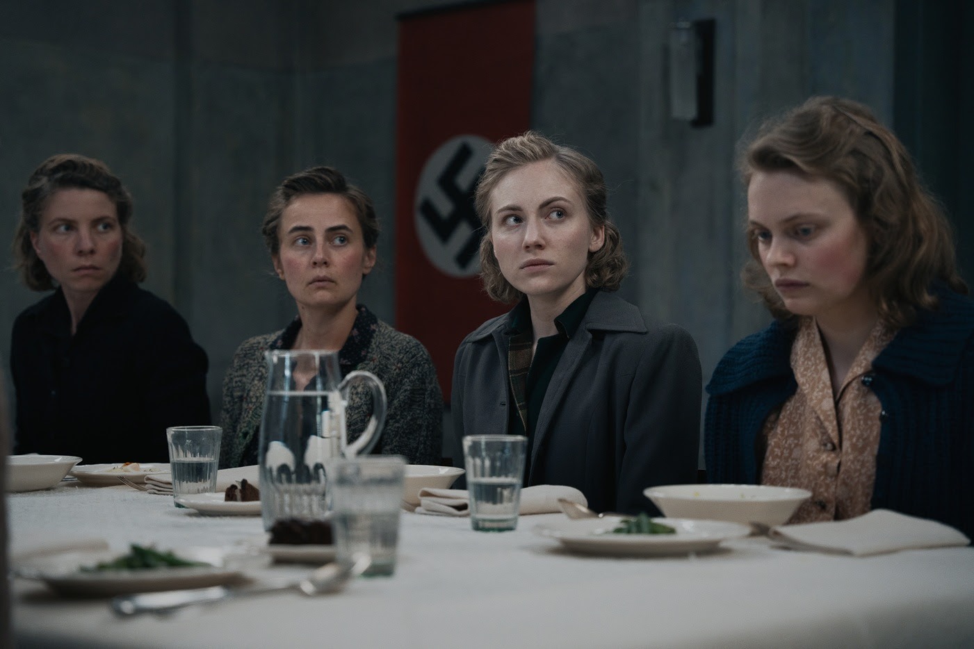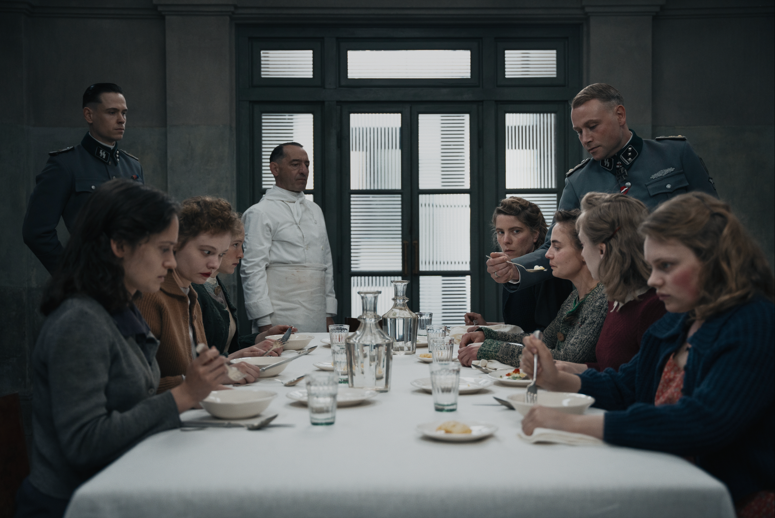 Pero el corazón del film está en otro lado: Un grupo de mujeres obligadas a sentarse alrededor de una mesa. En ese microcosmos —la sala de degustación, el dormitorio, el patio, el granero— se despliega una tensión constante entre instinto de supervivencia, deseo, miedo y necesidad de amor.