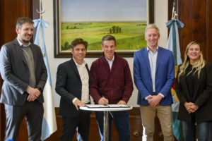 El gobernador de la provincia de Buenos Aires, Axel Kicillof, encabezó este jueves junto al presidente del Banco Provincia, Juan Cuattromo, una reunión con intendentes bonaerenses que suscribieron nuevos convenios de Provincia Leasing para la adquisición de bienes de capital. Fue en el Salón de Acuerdos de la Casa de Gobierno, donde también se firmaron contratos para brindar microcréditos a emprendedores y emprendedoras locales.