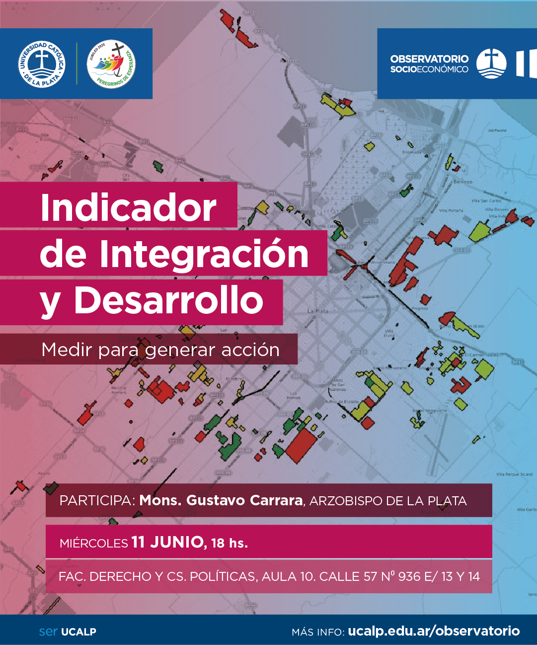 El Observatorio Socioeconómico de la UCALP presentará el próximo miércoles 11 de junio a las 18, el Indicador de Integración y Desarrollo del Gran La Plata 2024, con un exhaustivo relevamiento de más de 260 barrios, a través de múltiples variables. El evento, que se realizará en la facultad de Derecho y Ciencias Políticas -calle 57 entre 13 y 14-, contará con la presencia del Arzobispo y Gran Canciller de nuestra Universidad, monseñor Gustavo Carrara.