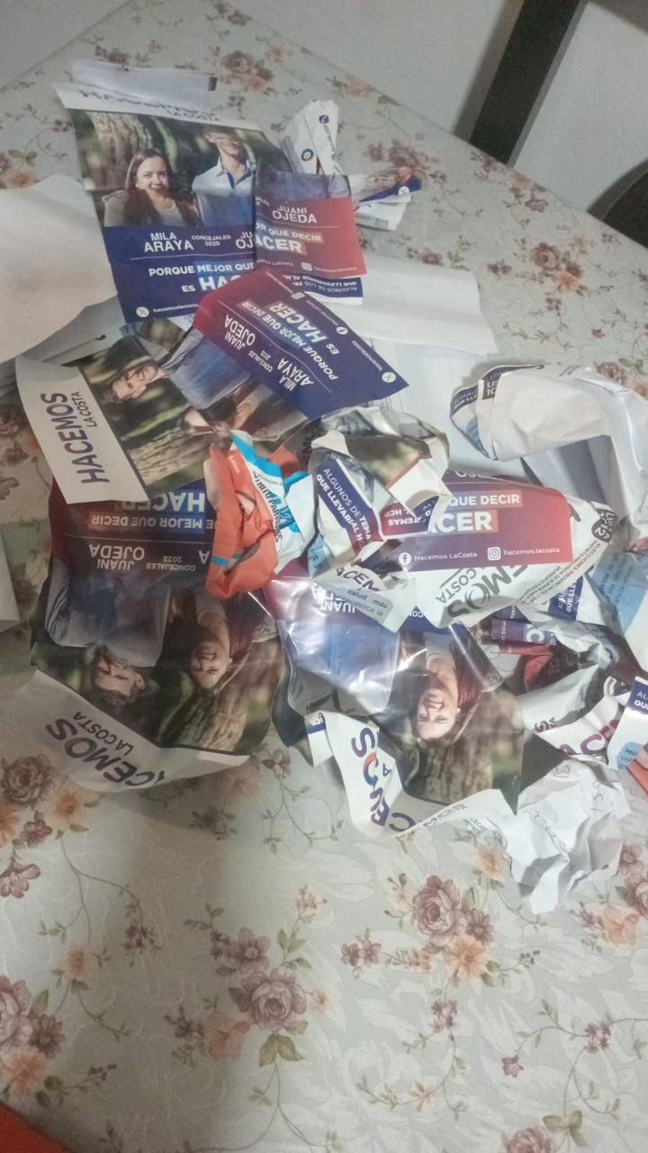 Los candidatos de Hacemos La Costa denuncian que hay personal del partido Somos Buenos Aires que se dedica a sacar y esconder folletos y boletas “para intentar que las propuestas no lleguen a la gente”.