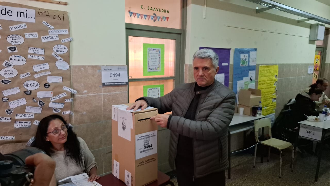 Pasadas las 13 horas, en la Escuela Primaria Nº78 “Francisco Perito Moreno”, sufragó el intendente Lucas Ghi acompañado por José María Ghi, primer candidato a concejal en la lista de Fuerza Patria en Morón.