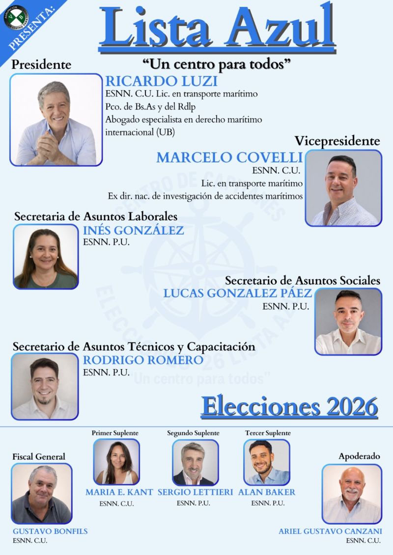 “Tenemos ideas, alternativas y la convicción de que podemos resolver los problemas del sector, poniendo en el centro a los capitanes y oficiales”, concluyó Luzi, posicionando a la Lista Azul como la opción de cambio y experiencia para los trabajadores de la Marina Mercante.