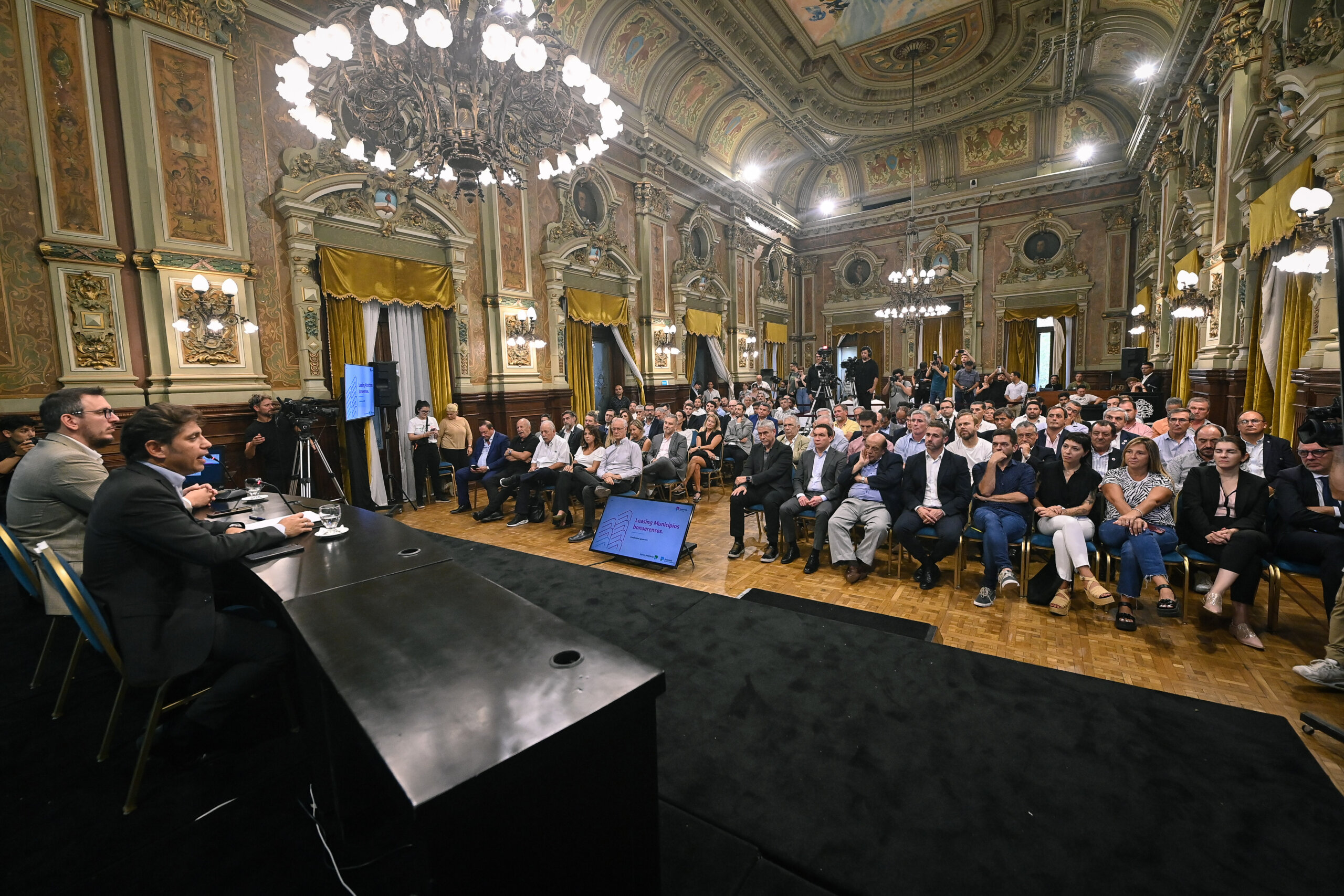 El gobernador de la provincia de Buenos Aires, Axel Kicillof, encabezó esta tarde junto al presidente del Banco Provincia, Juan Cuattromo, el acto de presentación de la cuarta edición de la línea de Provincia Leasing diseñada para los municipios bonaerenses, que asciende a $6.000 millones para el financiamiento de bienes que permitan reforzar sus servicios de obras públicas, salud y seguridad, entre otros.