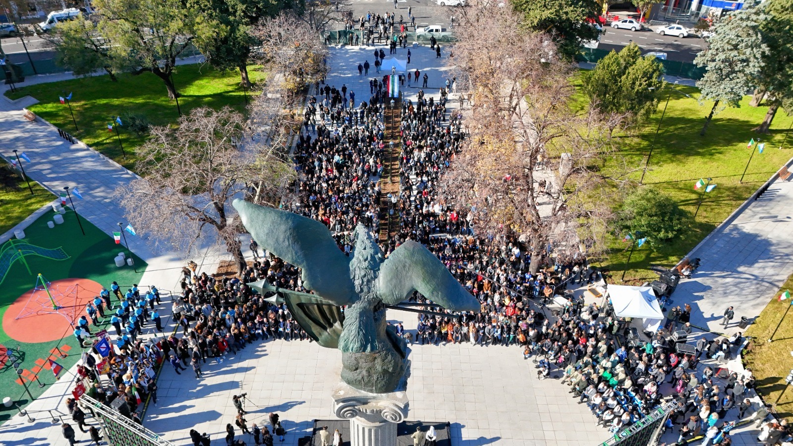 “La inauguración de esta plaza es un homenaje a esa hermosa nación que nos legó a la humanidad durante 1.500 años una enorme herencia en el plano de la filosofía, la política, el derecho, la ciencia, la cultura, la literatura, la poesía y el arte. Pero fundamentalmente es un homenaje a los miles de inmigrantes italianos que vinieron a construir esta ciudad desde 1882”, agregó Alak.