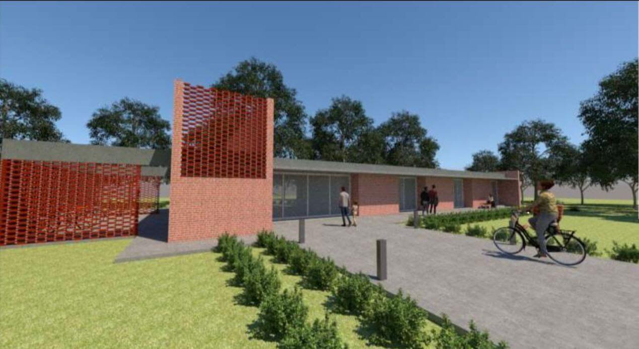 La construcción tendrá su fachada principal sobre la calle 528 bis y contará con un segundo acceso sobre 528. A su vez, tanto en los alrededores como sobre el resto del terreno se confeccionarán nuevos senderos y un estacionamiento, posibilitando la conexión con el parque lineal de calle 3.