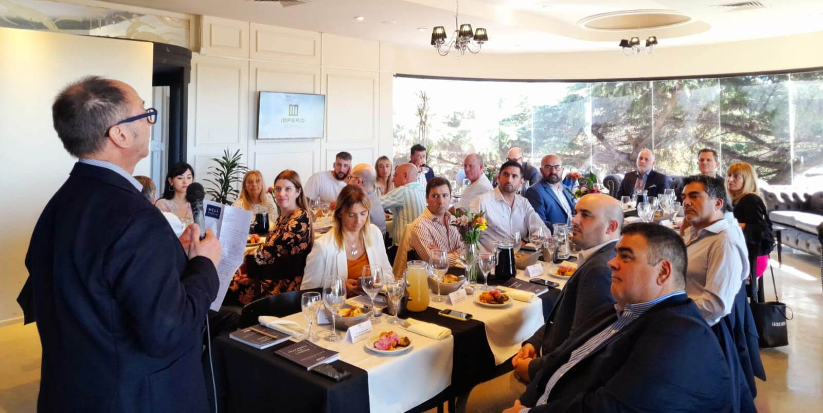Una masterclass del italiano Bruno Carapella, presidente de la Fundación Eurosur, experto en la creación de clúster para el desarrollo cautivó a los presentes durante un almuerzo en el salón Dardo Rocha del Hipódromo de La Plata.