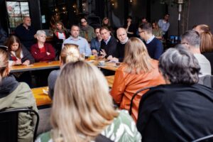 Antes de la conferencia de prensa, los dirigentes de Juntos compartieron un café con vecinos. Luego, caminaron por la avenida San Martín donde conversaron con comerciantes para escuchar las problemáticas y desafíos de la zona.