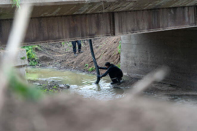 En este marco, también se detectó y se retiró una mancha de grasa animal en el arroyo De Castro, en la intersección con Camino Las Heras, donde se utilizaron cinco camiones con capacidad aproximada de 25 mil litros, a través de los cuales se limpió este residuo industrial no especial.