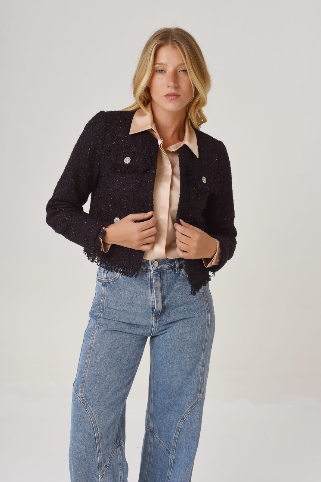 Sweaters Jacquard, Denim de calidad excepcional, camperas de cuero ecológico con avíos únicos, Chanel de lana con lúrex, todos ellos supercombinables para vivir esta estación con Pasión.