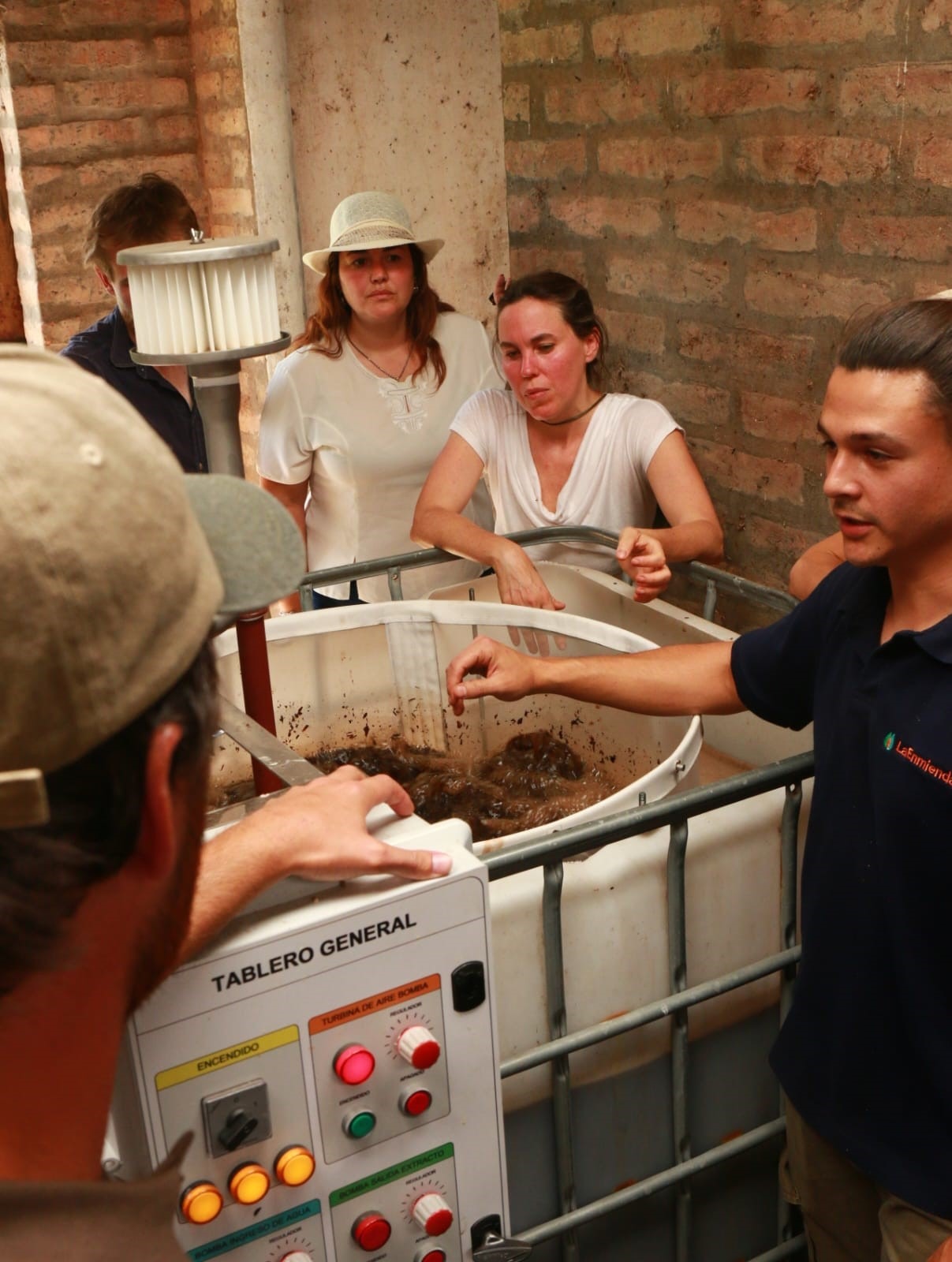 Soledad Reinoso y Joaquín Perez, parte del equipo técnico de LaEnmienda, capacitaron a los asistentes en la producción de extracto de compost en el biorreactor AERO-3000.