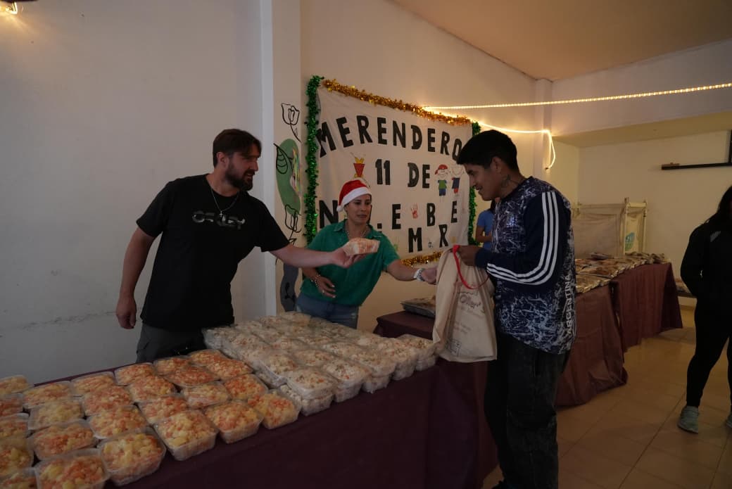 La actividad se realizó en el Merendero 11 de Noviembre y las viandas incluyeron pollo al horno y chorizos a la parrilla, ensalada rusa y arroz primavera, además de cajas navideñas donadas por la empresa Cookins, con turrones, garrapiñadas, pan dulce y budines. También se repartieron juguetes donados por los vecinos de Caleta Olivia y una bolsa de golosinas para cada niño.