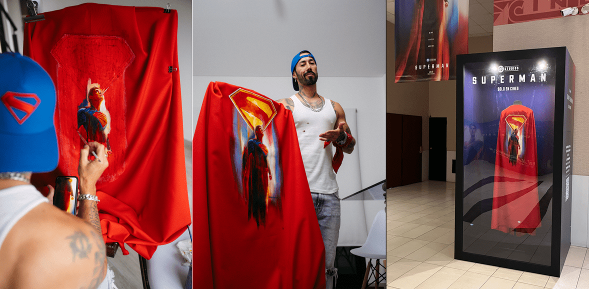La primera pieza fue una capa de Superman intervenida con el arte de la película que, si sos socio de CineFan, podés ganarte comprando tus entradas en Cinemark Hoyts.